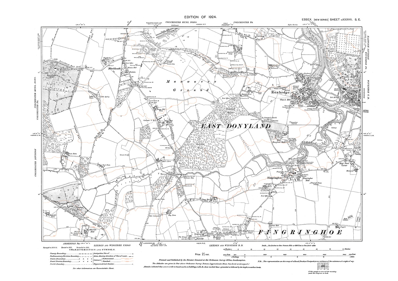 Old OS map dated 1924, showing Wivenhoe (west), Rowhedge, Fingringhoe and Blackheath in Essex - 37SE