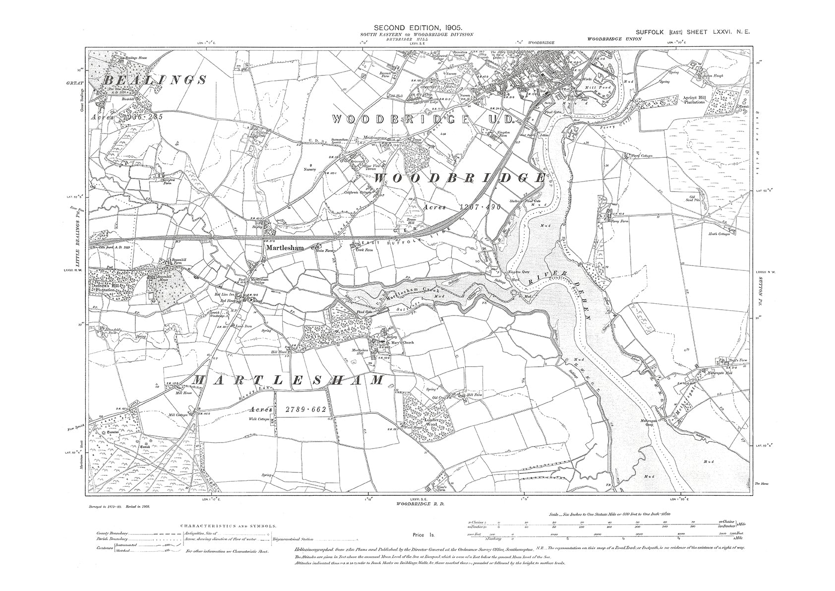 Woodbridge (south), Martlesham, old map Suffolk 1905: 76NE